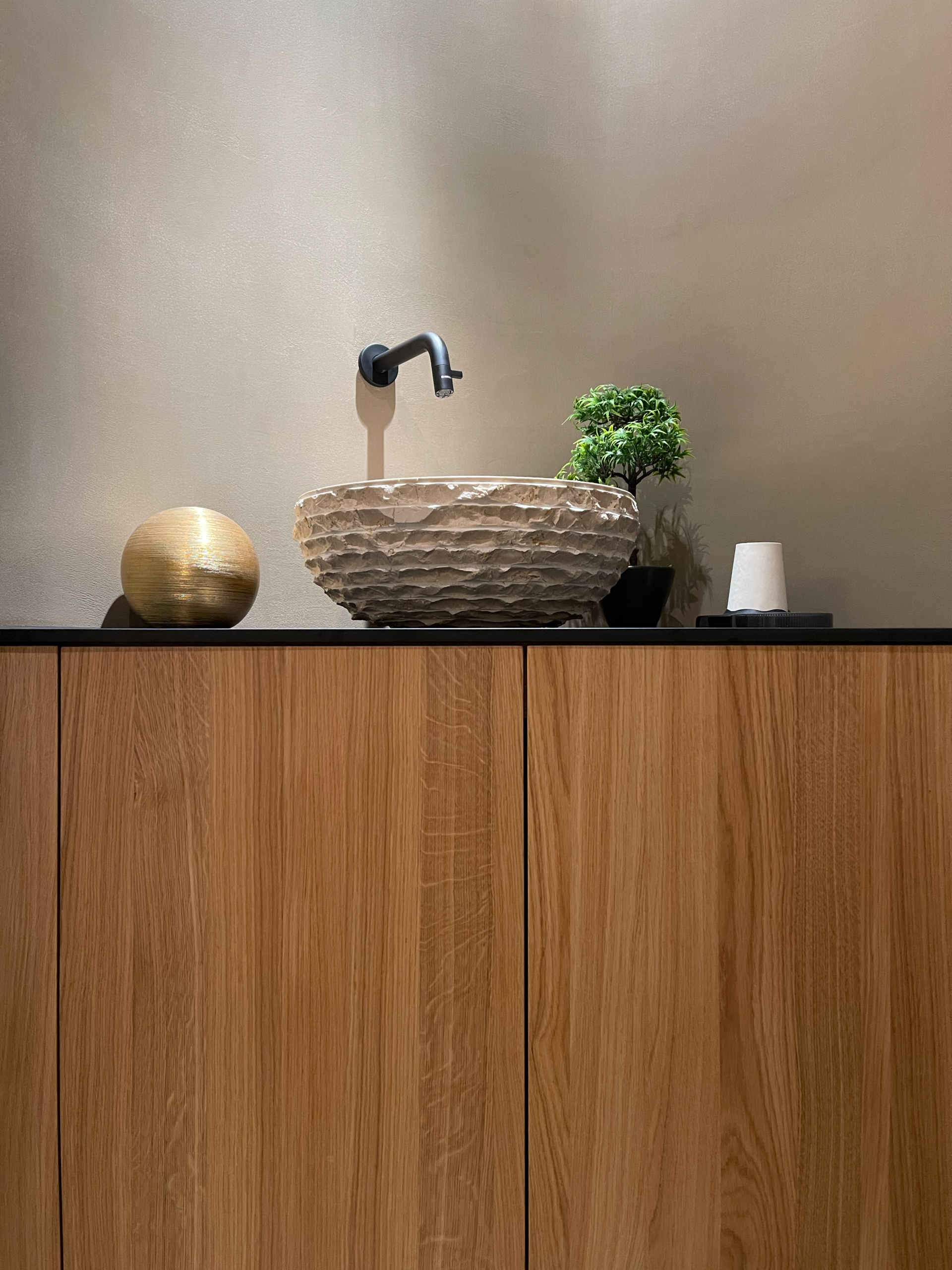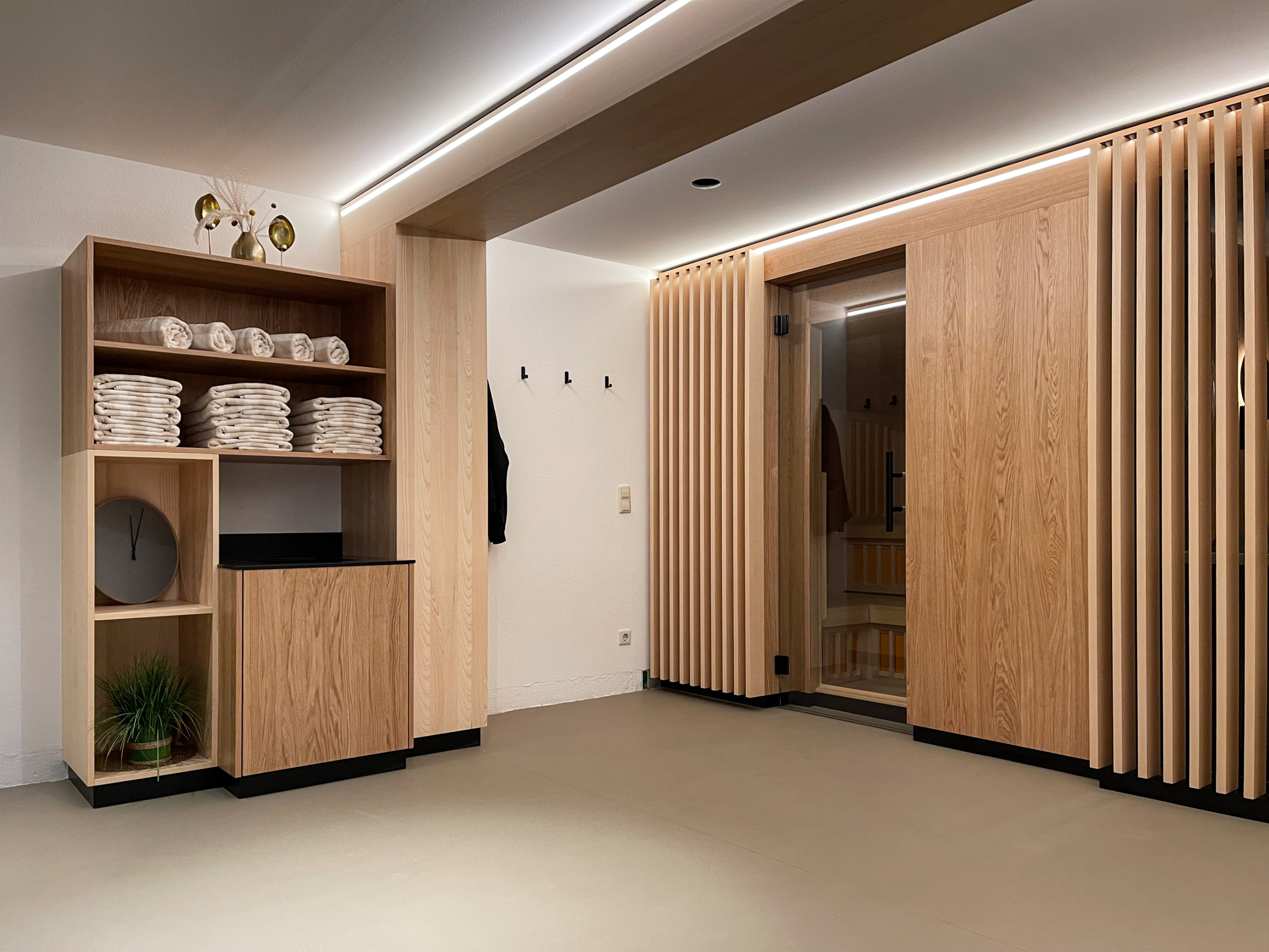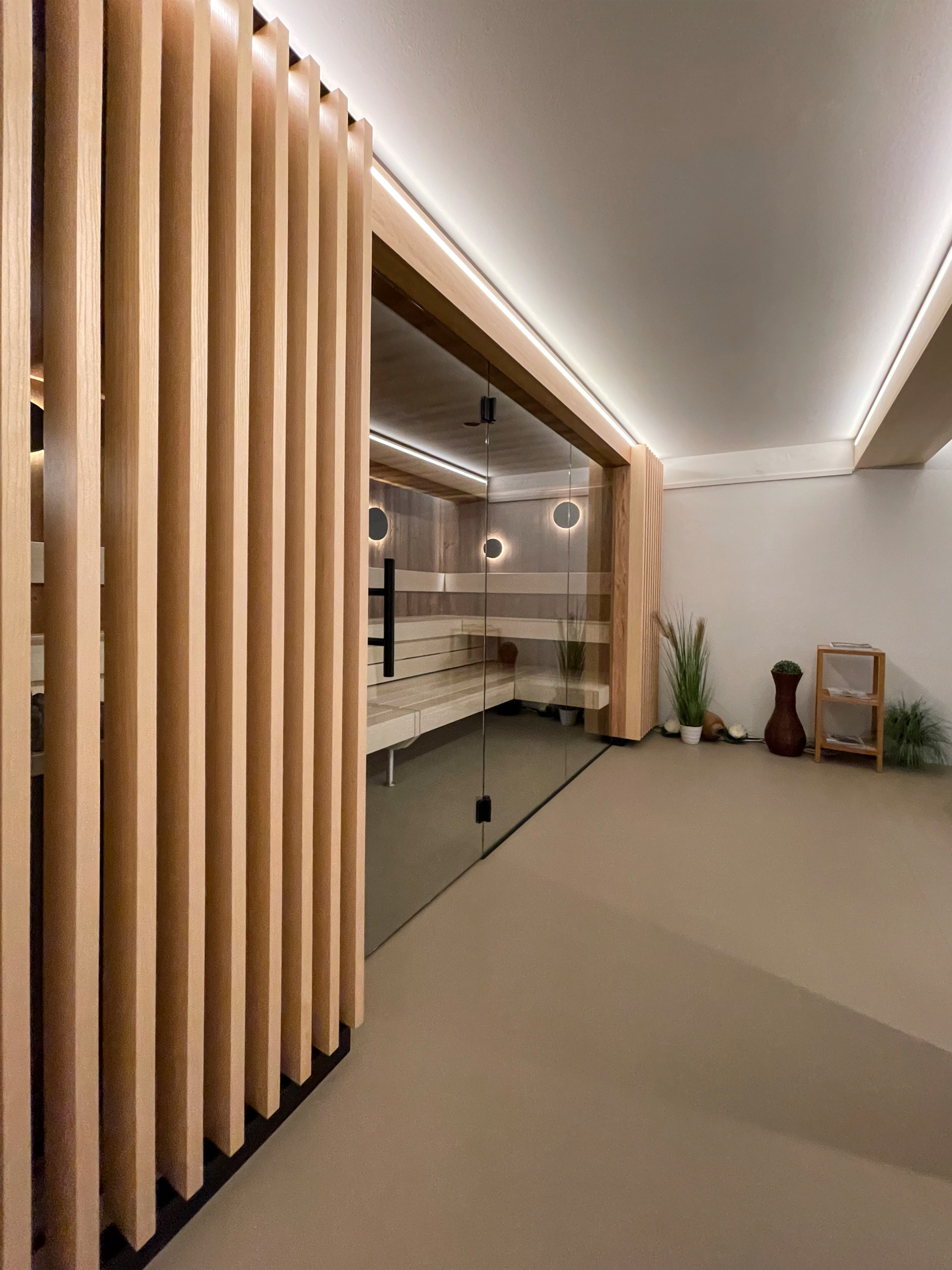 - Wände: Thermo-Fichte, Stonelight Wandleuchten, Steinfeld