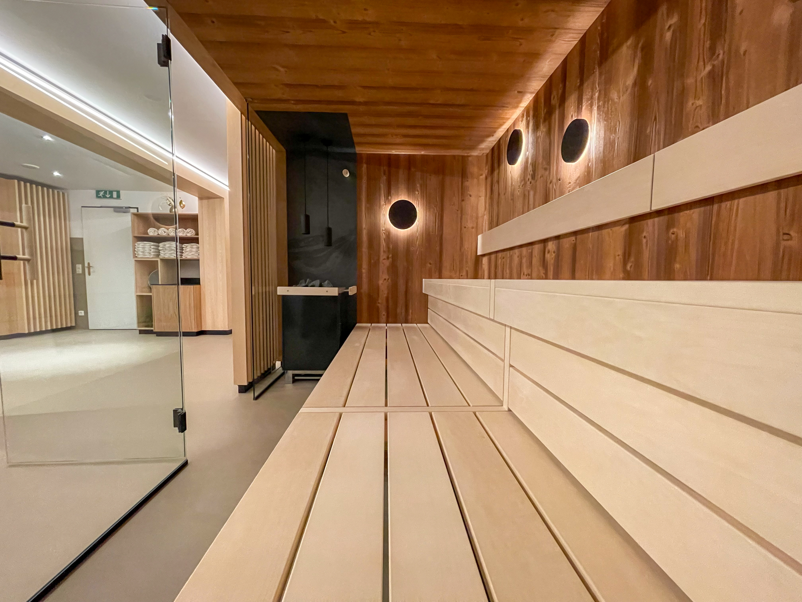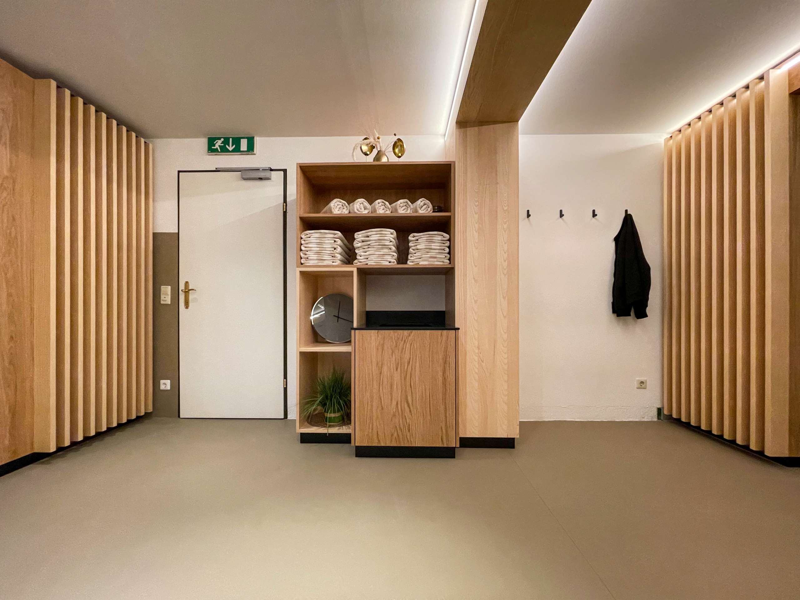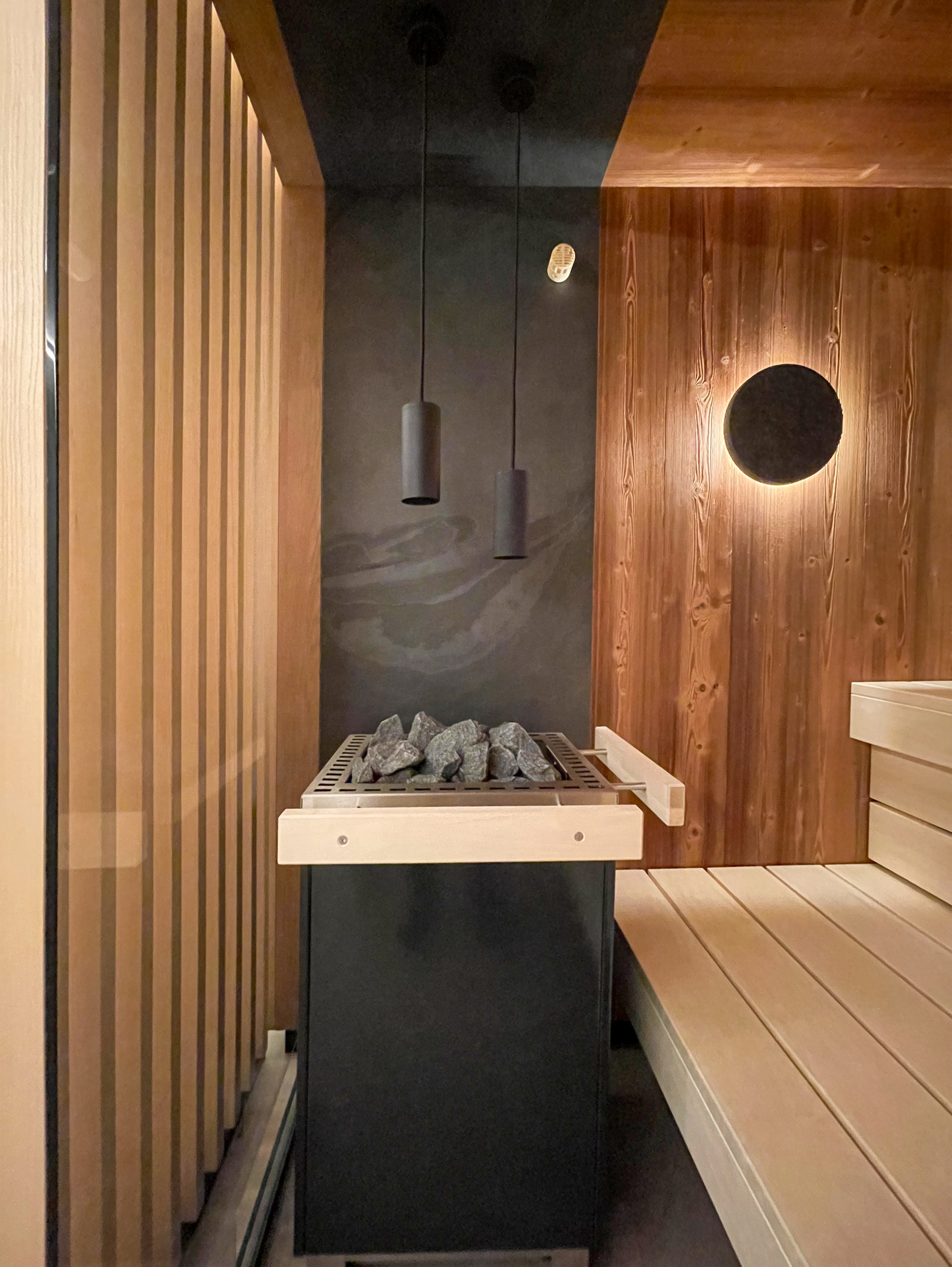 - Decke: Thermo-Fichte, Steinfeld, Hängeleuchten
