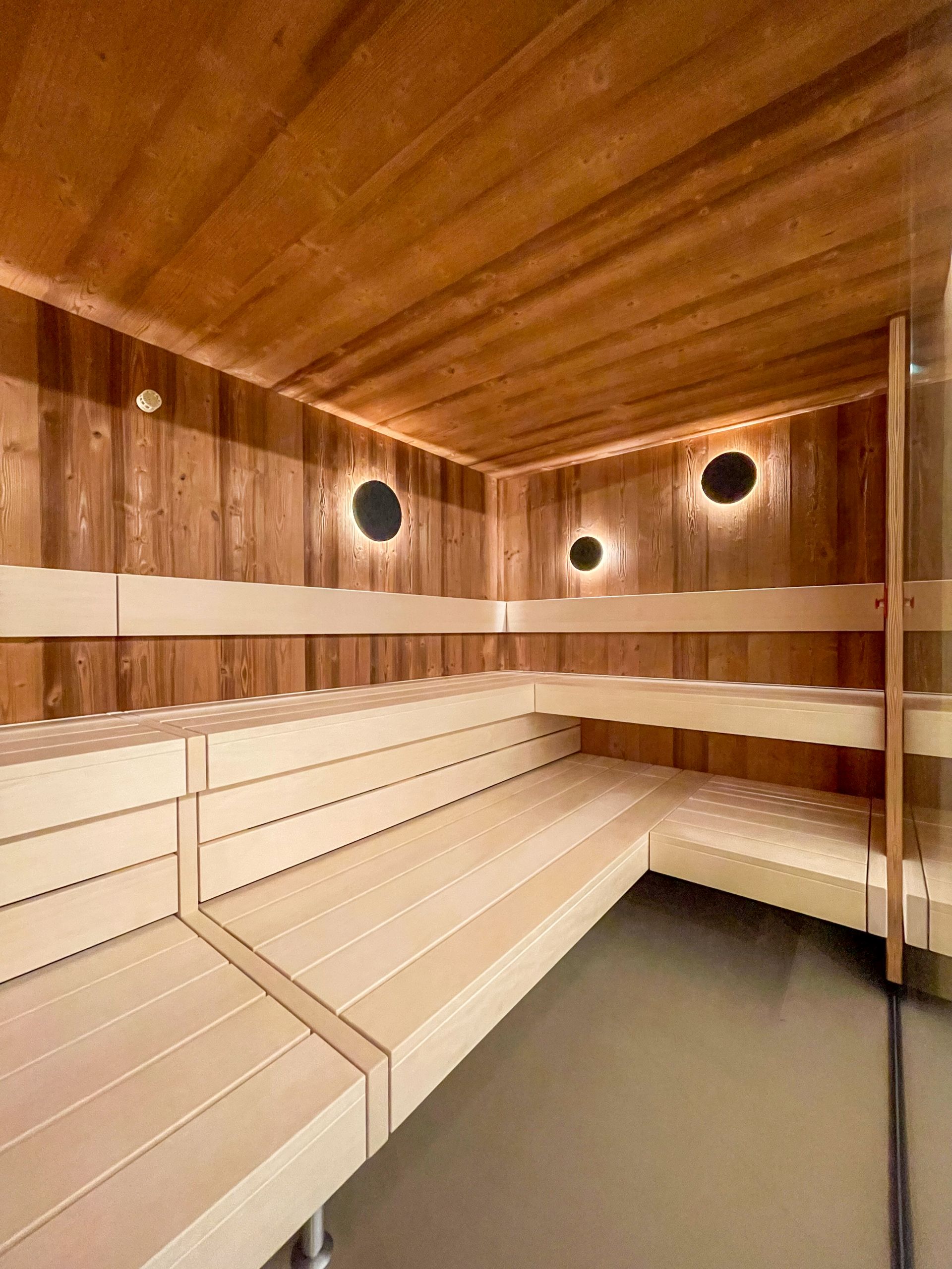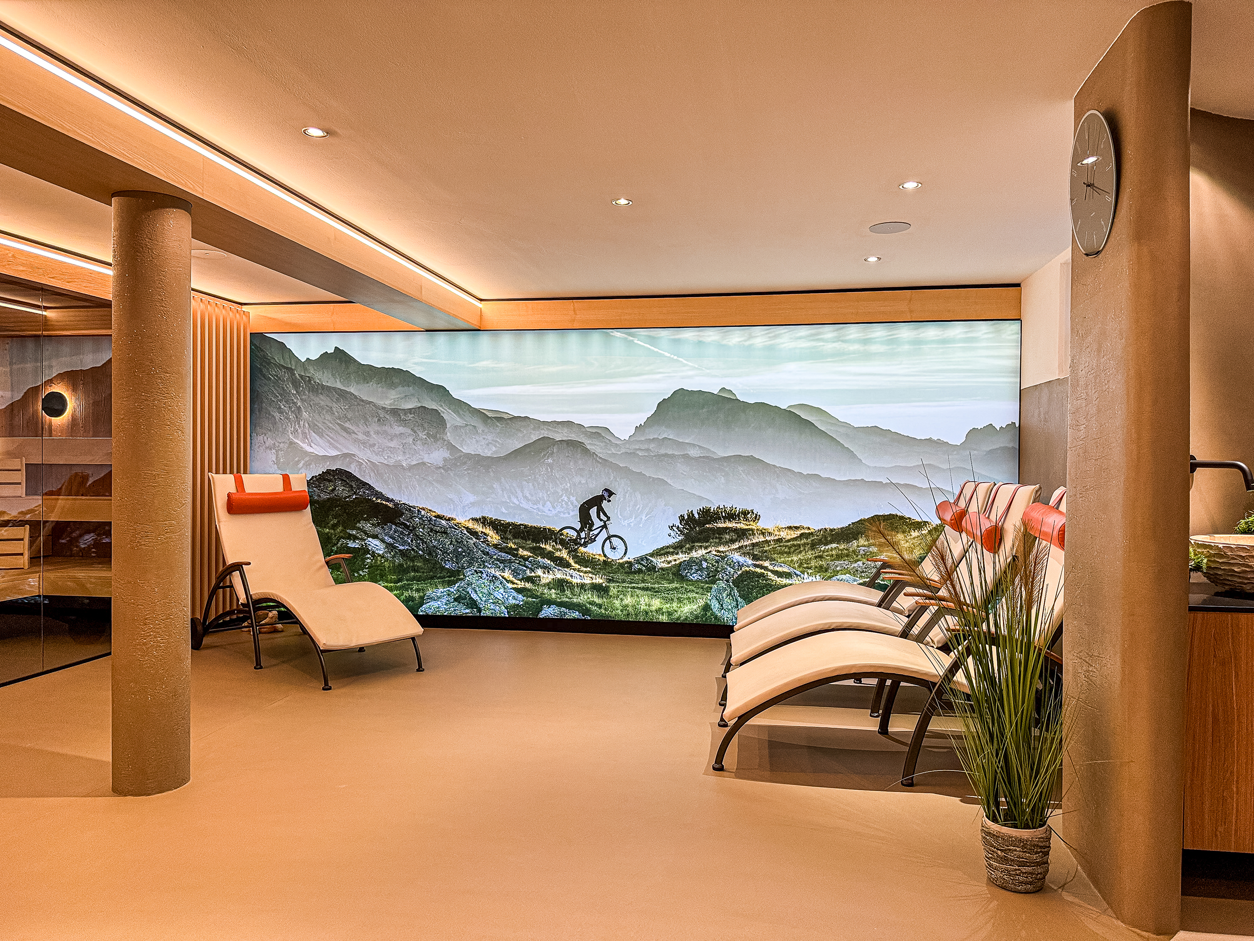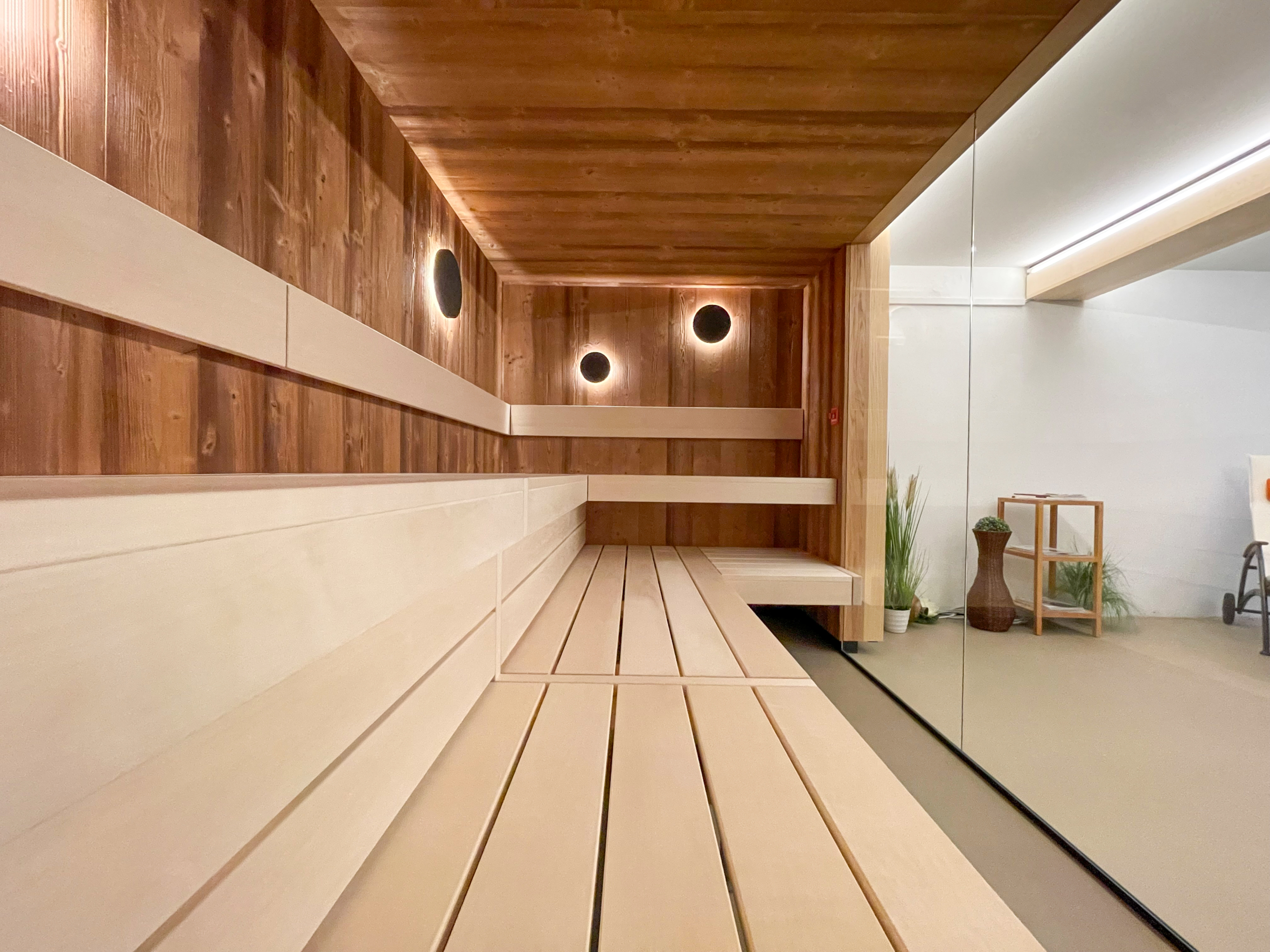 - Decke: Thermo-Fichte, Steinfeld, Hängeleuchten